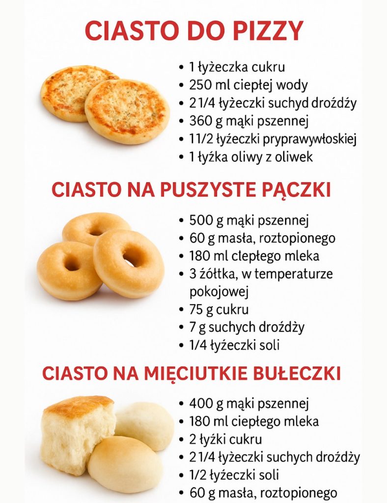 Ciasto do Pizzy – domowe i elastyczne! Składniki:1 łyżeczka cukru250 ml ciepłej wody2¼ łyżeczki suchych drożdży360 g mąki pszennej1 ½ łyżeczki przyprawy włoskiej1 łyżeczka soli1 łyżka oliwy z oliwek Sposób przygotowania: