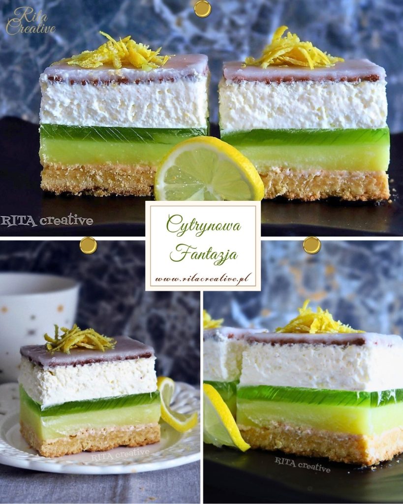 Całość przykryta ciemnymi biszkoptami polanymi cytrynowym lukrem, wesoło udekorowanym czuprynką z otartej skórki cytryny Zapisz sobie przepis, przyda się SKŁADNIKI:(na foremkę 25×35 cm.)Ciasto kruche:mąka pszenna (3 szkl.)cukier puder (4 łyżki )masło