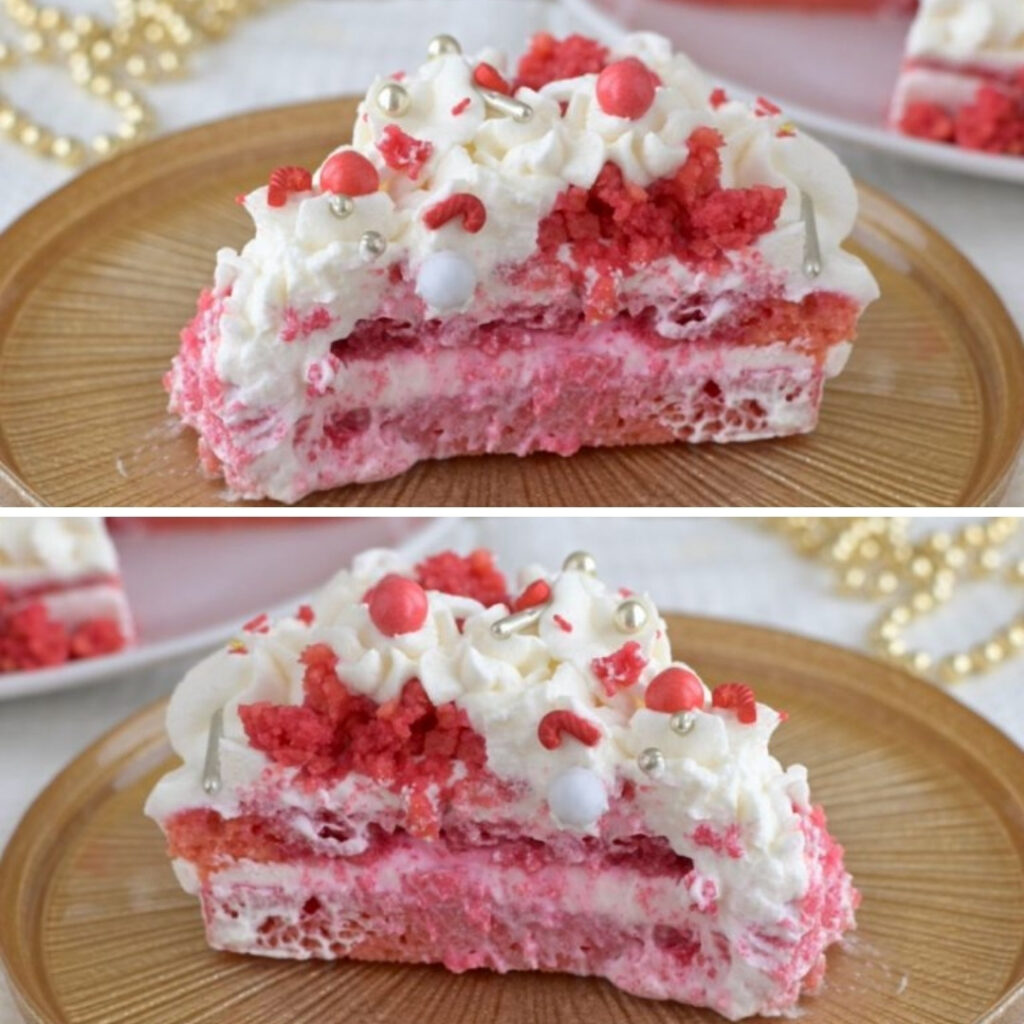 przepis Ciasto Świętego Mikołaja: idealne ciasto na obchody końca roku, kolorowe i zabawne do zrobienia może z dziećmi. Tort mikołajkowy lub Wesołych Świąt doskonale nadaje się również do świętowania urodzin lub do świętowania Sylwestra. Do namoczenia biszkoptu użyłam likieru Alchermes, ale to również intensyfikuje kolor ciasta, ale można też użyć bezalkoholowego syropu cukrowego. Odkryj składniki i kroki, które pomogą Ci przygotować ten prosty świąteczny przepis.