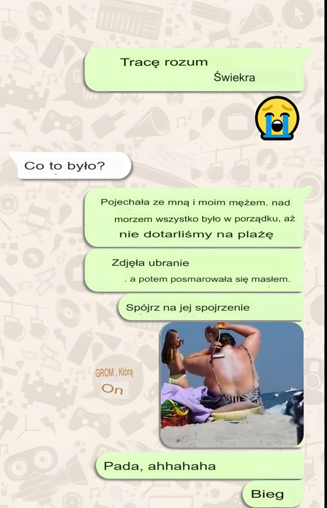 MOJA TEŚCIOWA PRZYJECHAŁA Z MĘŻEM I ZE MNĄ NAD MORZEM I WZIĘŁA SWÓJ STRÓJ KĄPIELOWY: