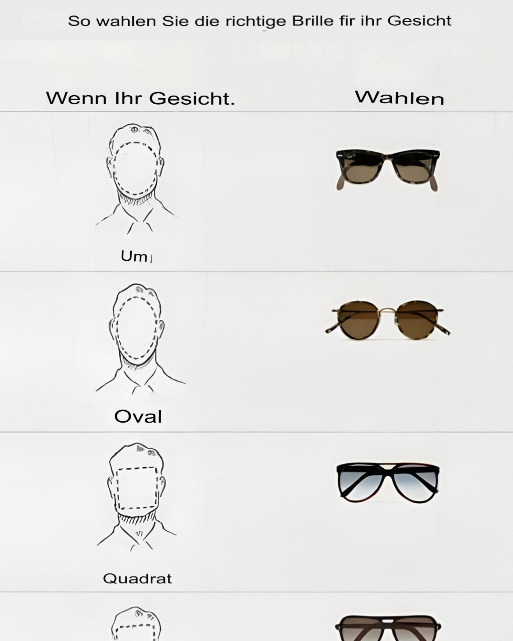 Przed wyborem okularów ważne jest określenie kształtu swojej twarzy. Zasadniczo istnieje siedem głównych kształtów: