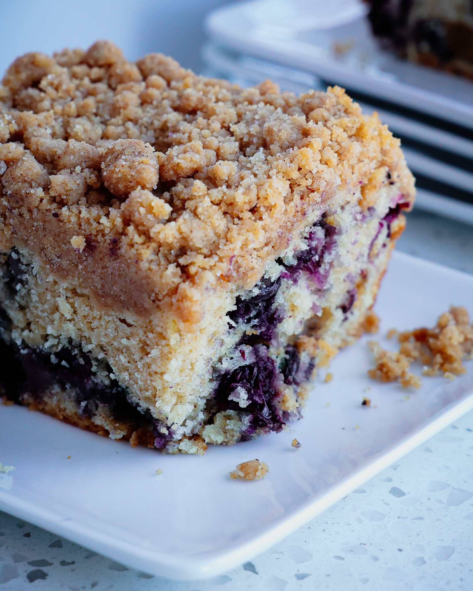 Ciasto kawowe z jagodami i klamrą to pyszne ciasto waniliowo-maślane pełne świeżego smaku jagód i zwieńczone słodką cynamonową posypką. Jest po prostu niebiańskie, z soczystymi jagodami w każdym kęsie. Aby uzyskać przesadną ucztę, udekoruj je gałką lodów waniliowych.