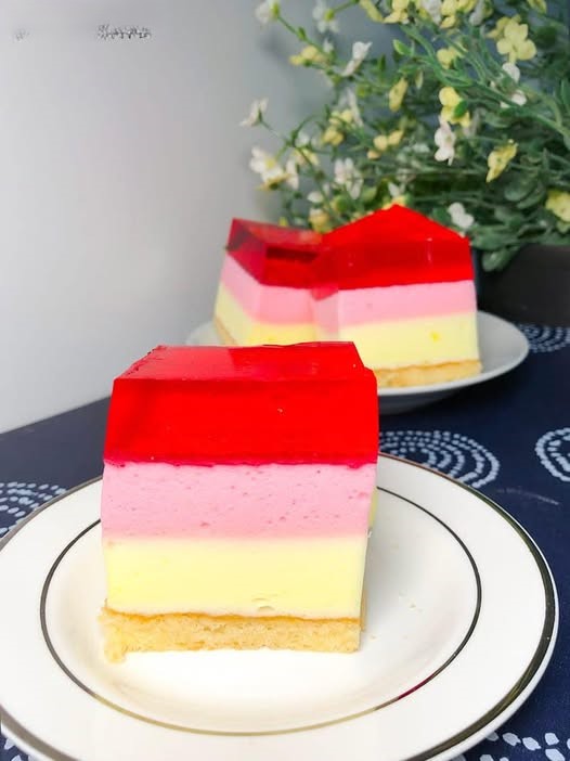 Ciasto kolorowa chmurka to bardzo lekki i szybki w przygotowaniu deser. Ciasto jest wyjątkowo delikatne, ponieważ składa się jednej warstwy biszkopta oraz z dwóch puszystych kolorowych mas, przygotowanych na bazie galaretki. Wykończenie ciasta stanowi galaretka malinowa.