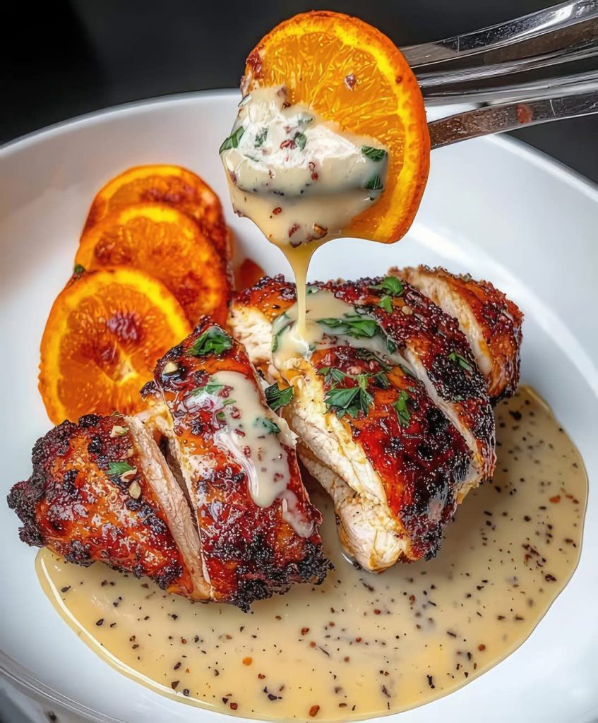Kurczak w glazurze pomarańczowej z sosem śmietankowym Dijon 🍊