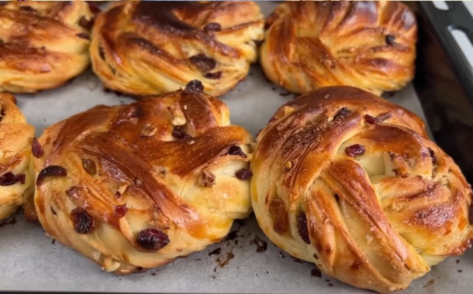 Ten chleb z żurawiną i rodzynkami to miękki i aromatyczny bochenek wzbogacony suszonymi owocami i chrupiącymi orzechami włoskimi. Idealny na śniadanie, herbatę lub jako pyszna przekąska, z pewnością stanie się ulubionym przysmakiem całej rodziny.