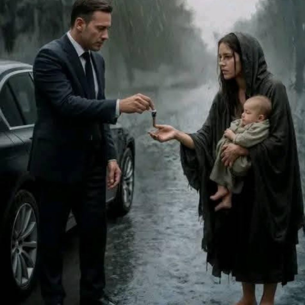 Na czerwonym świetle wzrok Alexandra uchwycił niespójny widok. Na rogu ulicy stała młoda kobieta z dzieckiem na rękach, przemoczona przez burzę, jej ciało pochylone wokół dziecka, aby je chronić. Nie miała parasola, tylko znoszony, przemoczony płaszcz, a jej drżące ramiona kurczowo trzymały dziecko w dzikiej desperacji.
