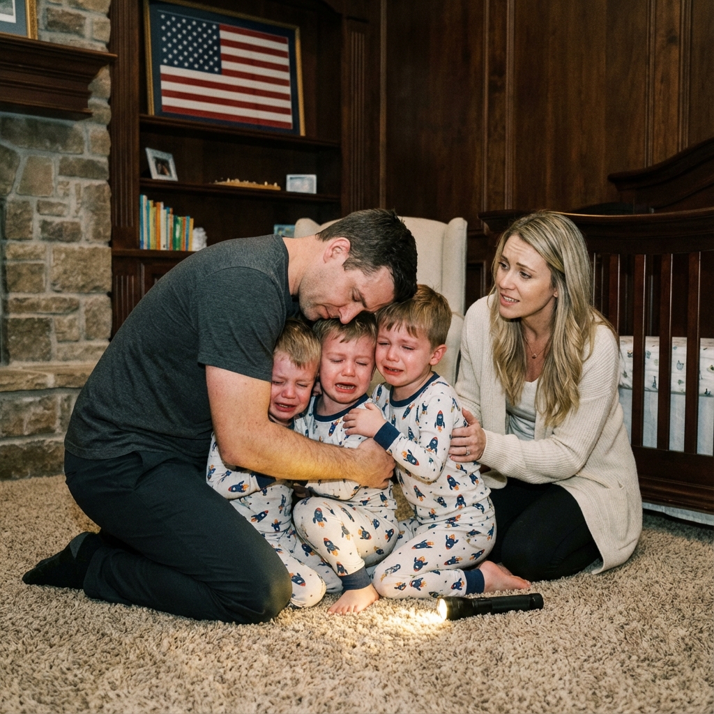Chłopcy zamarli. Śmiech ucichł natychmiast. Trzy pary oczu – oczu identycznych z jego własnymi – wpatrywały się w niego z niepokojem. Instynktownie cofnęły się o pół kroku, zbliżając się do nóg Sary.