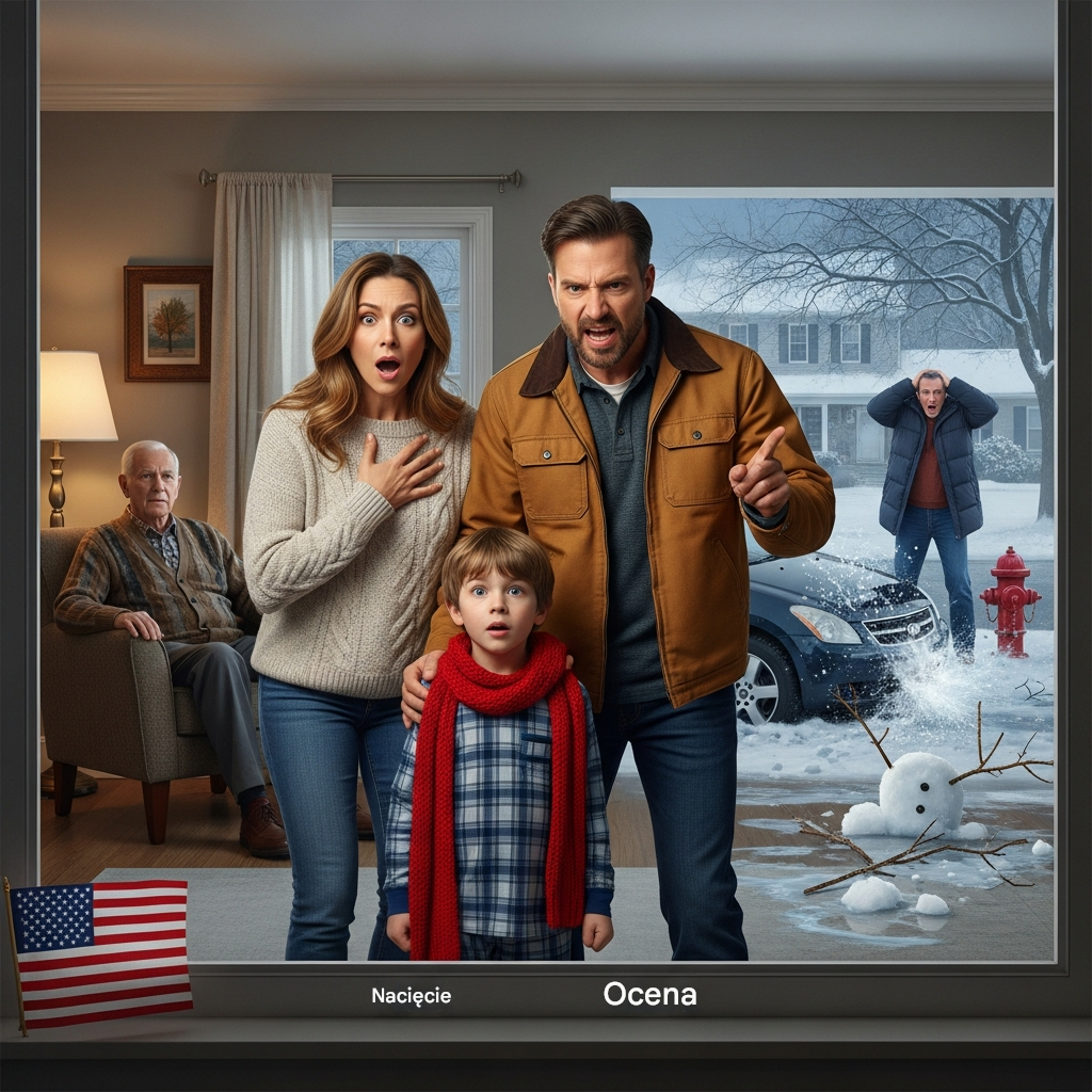 Na początku nic nie powiedziałem. Po prostu stałem z ręką na piersi, patrząc, jak woda tryska w lodowate powietrze, jak nasz sąsiad wytacza się z samochodu, machając rękami z frustracji i rozglądając się dookoła, jakby cała ulica go zdradziła.