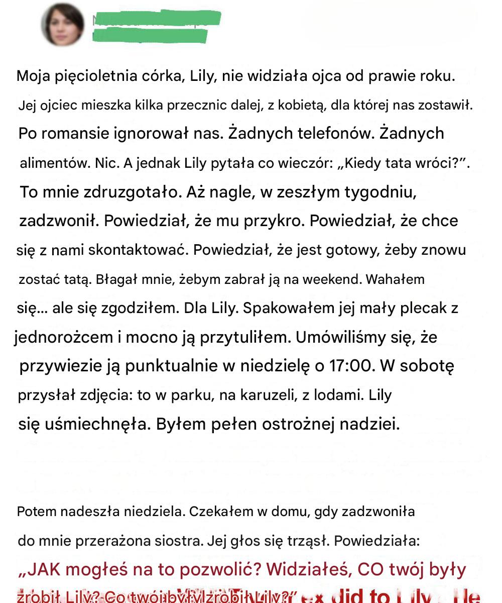 Byłem ostrożny, ale Lily zasługiwała na szansę bycia kochaną przez ojca.