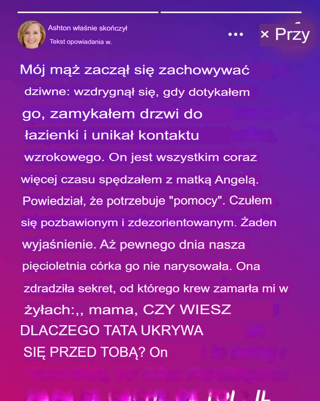 „Och, nic takiego, Ashton” – powiedział, omijając mnie i starając się nie drgnąć. „Po prostu przyzwyczaiłem się do pieluch, chyba. Wiesz… do pracy i tak dalej”.