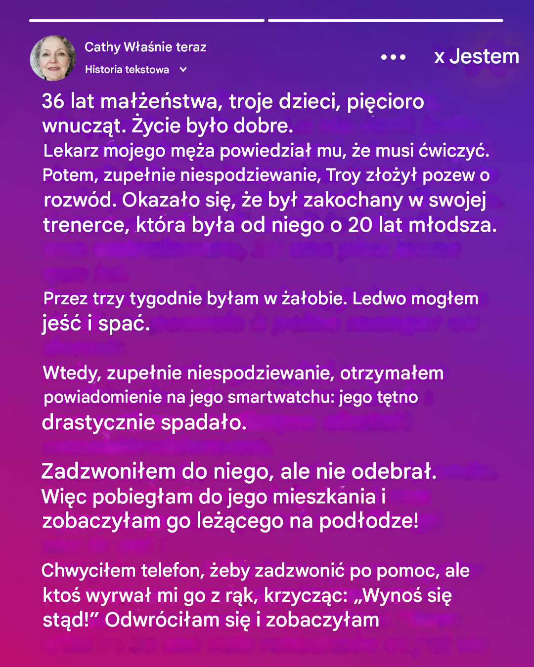 Mój mąż i ja spędziliśmy 36 lat na budowaniu wspólnego życia. A potem, zupełnie niespodziewanie, złożył pozew o rozwód. Myślałem, że to koniec naszej historii – aż do momentu, gdy proste powiadomienie zmieniło wszystko.