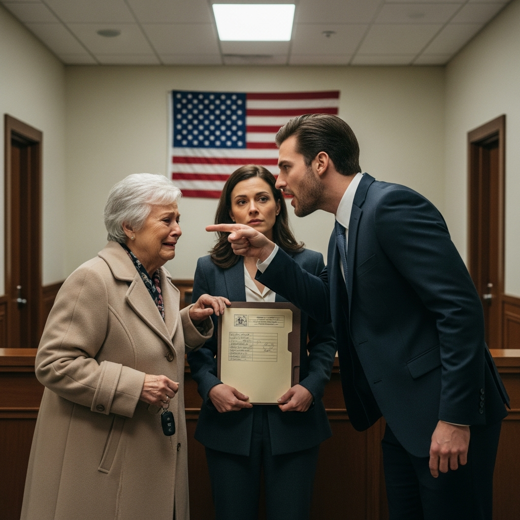 „Nigdy więcej nie zobaczysz dzieci, ty szalona staruszko” – zaśmiał się przed sędzią, a jego drogi amerykański garnitur lśnił w świetle reflektorów sali sądowej.