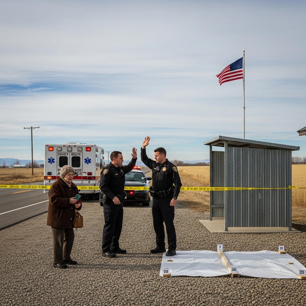 Żółta taśma rozciągnięta była na przystanku autobusowym — tej prostej, trójstronnej konstrukcji z ławką i porysowanymi ścianami z pleksiglasu, przy której czekałem niezliczoną ilość razy, czytając książkę, płacąc rachunki lub po prostu patrząc na pola pszenicy ciągnące się w stronę horyzontu.