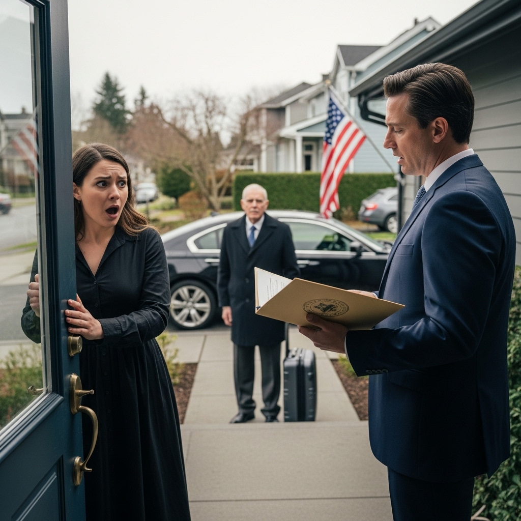 „O czym ty mówisz?” – wydyszała. „Mój mąż zmarł wczoraj. Odziedziczyłam ten dom. Jestem właścicielką”.