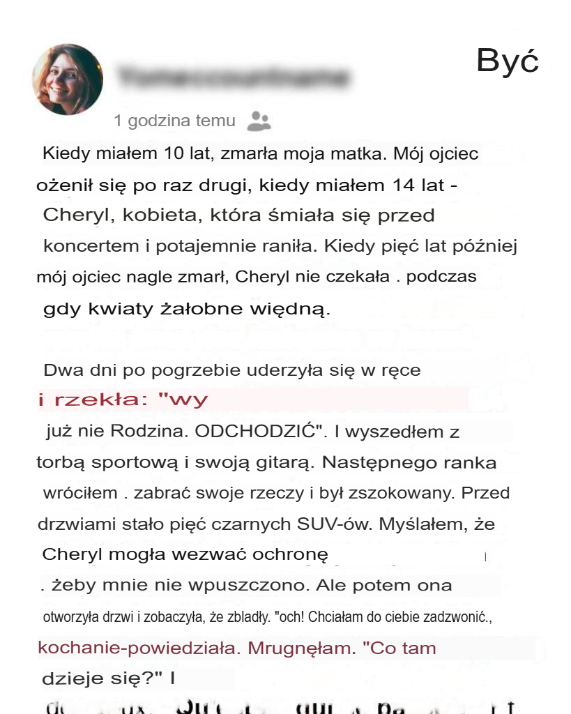 Pogrzeb jeszcze się nie skończył, gdy Cheryl zaczęła traktować mnie jak gościa w moim rodzinnym domu. Wprowadziła się do domu, wyrzuciła stare magazyny ojca i zastąpiła oprawione zdjęcia rodzinne swoimi.