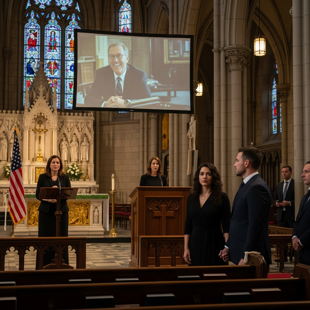 Trumna mojego ojca spoczywała z przodu, w gęstym świetle katedry, otoczona kwiatami, które wyglądały zbyt pięknie, by mogły być prawdziwe. Z boku, z boku, stał mały bukiet amerykańskich flag, takich, jakie widuje się na pogrzebach cywilnych, i coś w tym detalu – tak oficjalnym, tak schludnym – sprawiło, że gardło ścisnęło mi się mocniej niż modlitwy.