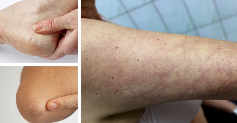 - 👣 **Rogowacenie pięt i skóry na łokciach** – nadmierna suchość.