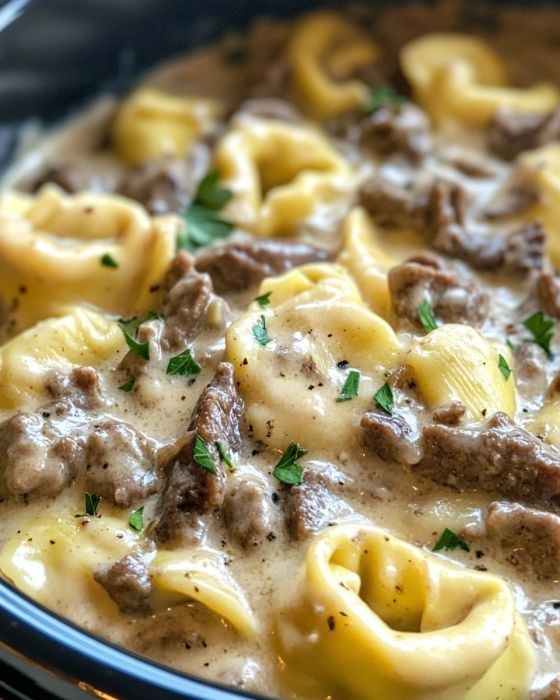 Philly cheesesteak i spaghetti to idealne połączenie, łączące dwa amerykańskie klasyki, które wszyscy uwielbiają. Delikatne tortellini i soczysta wołowina są zamknięte w kremowym sosie provolone w tym wolno gotowanym daniu cheesesteak tortelli, dzięki czemu powstaje bogata i apetyczna kolacja. Możesz przygotować to danie i o nim zapomnieć — jest idealne na zabiegane wieczory w tygodniu lub niezobowiązujące weekendowe kolacje — i nadal będzie pyszne, bez względu na to, jak mało masz czasu.
