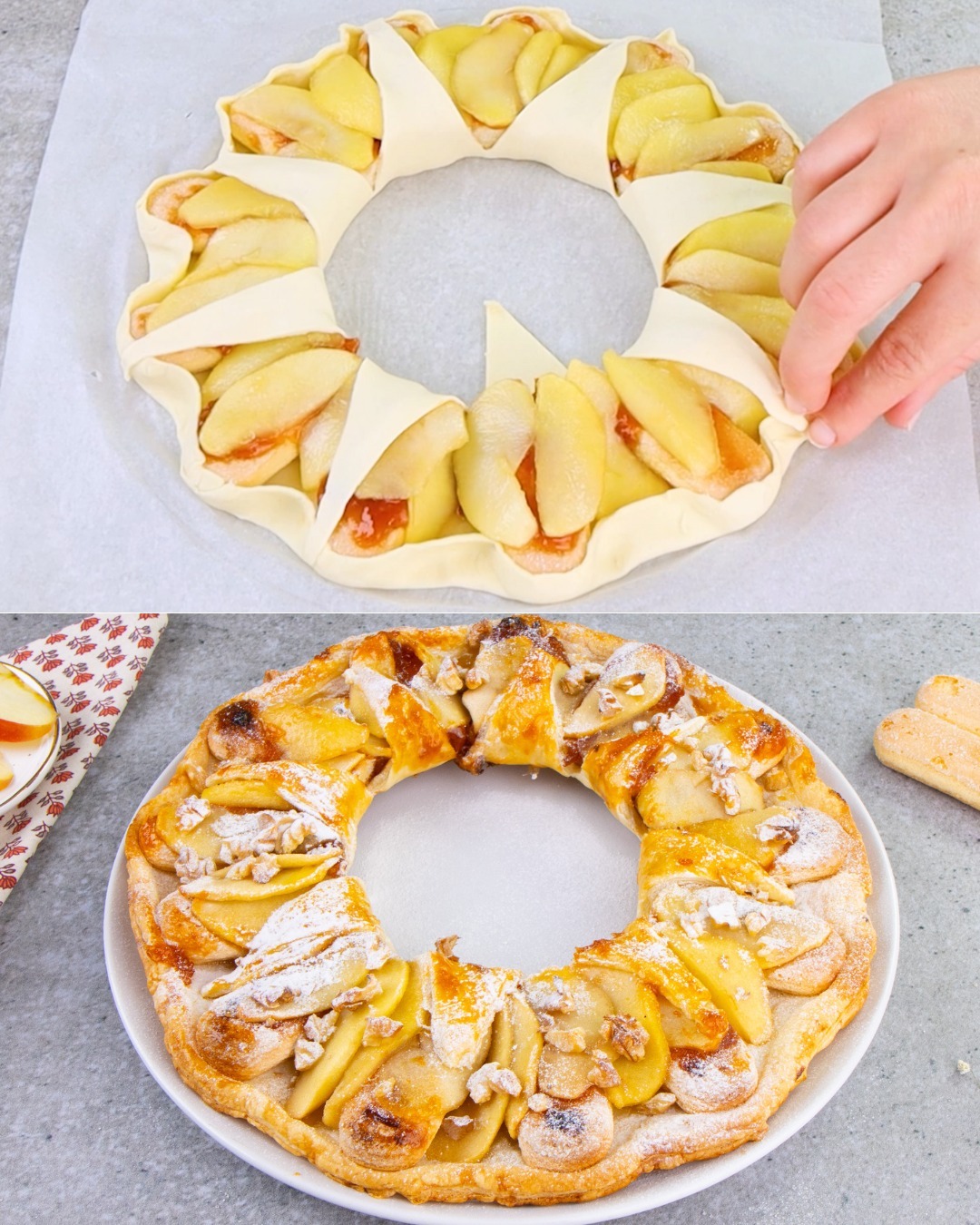 Pączek z ciasta francuskiego z jabłkami i biszkoptami: gotowy w 20 minut!