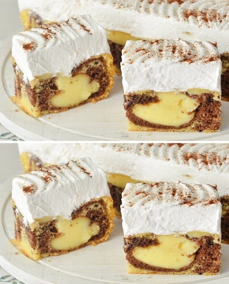 Ciasto z budyniem waniliowym i bitą śmietaną to doskonały wybór na każdy stół. Jego kremowa konsystencja i słodki smak sprawią, że nikt mu się nie oprze. Wypróbuj ten przepis i ciesz się pysznym deserem!
