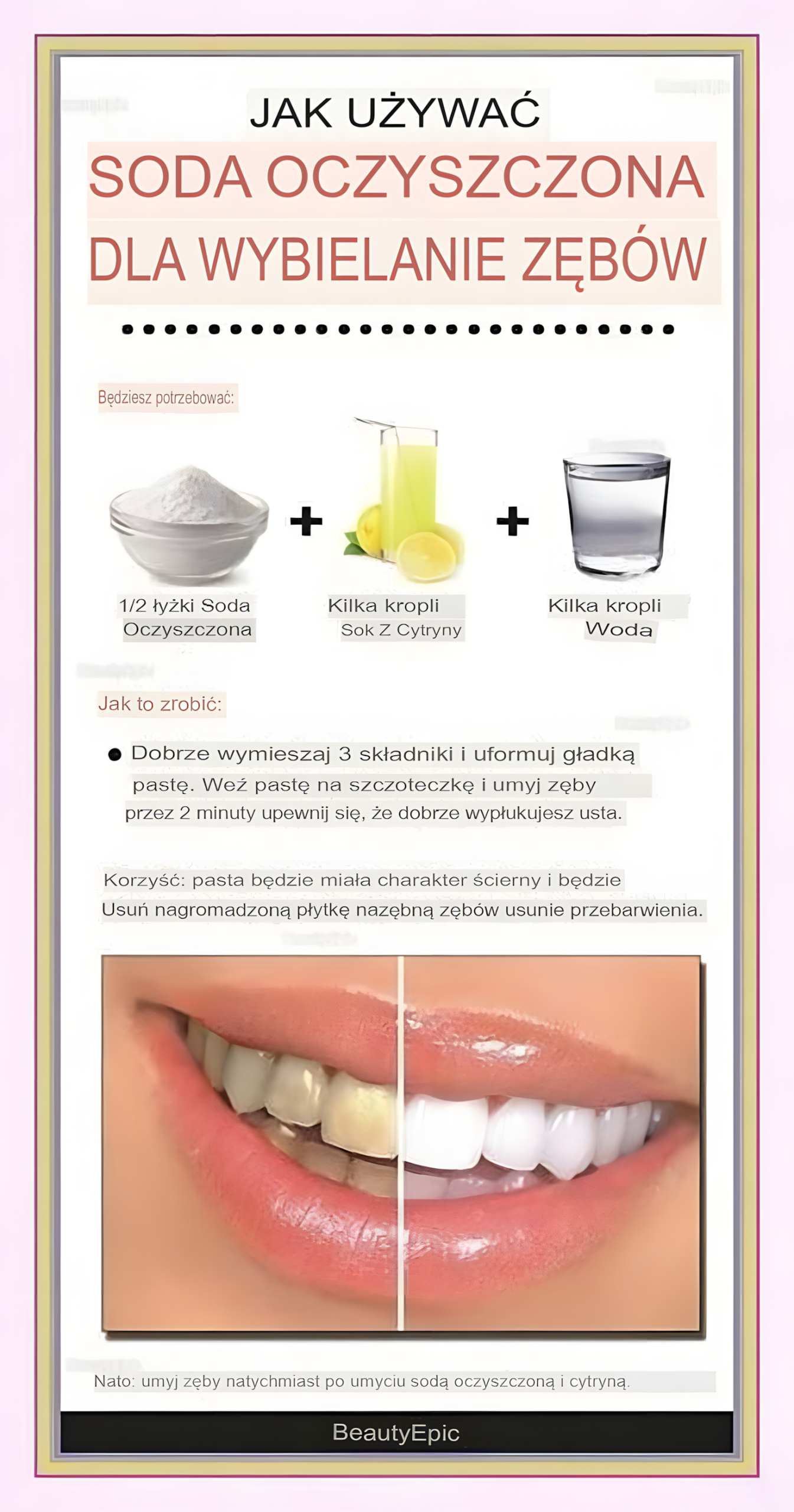 Jeśli chcesz naturalnie rozjaśnić przebarwienia na zębach, możesz wypróbować mieszankę sody oczyszczonej i soku z cytryny. Ta metoda działa dzięki właściwościom ściernym sody oraz wybielającemu działaniu kwasu cytrynowego.