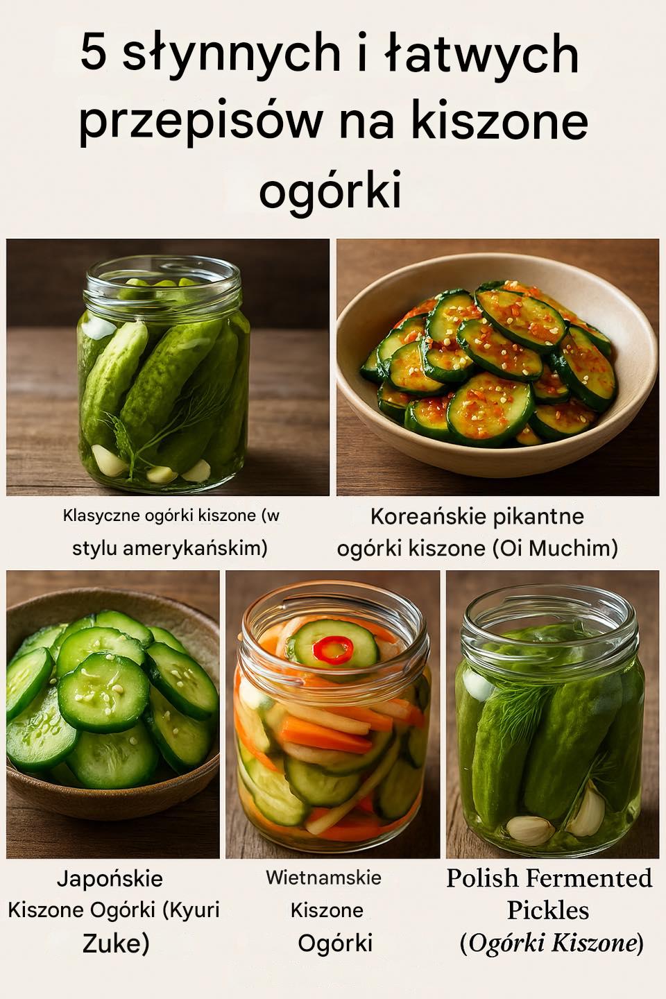 Kiszone ogórki to nie tylko zdrowy dodatek do posiłków, ale także idealna przekąska, która podbija gusta na całym świecie. Dzięki różnorodności technik fermentacji i marynowania możesz odkryć unikalne smaki różnych kultur, nie wychodząc z kuchni. Poniżej przedstawiamy pięć łatwych i znanych przepisów , które warto wypróbować w domu. Każdy z nich oferuje coś wyjątkowego – od klasycznych pikli po tradycyjne azjatyckie inspiracje.