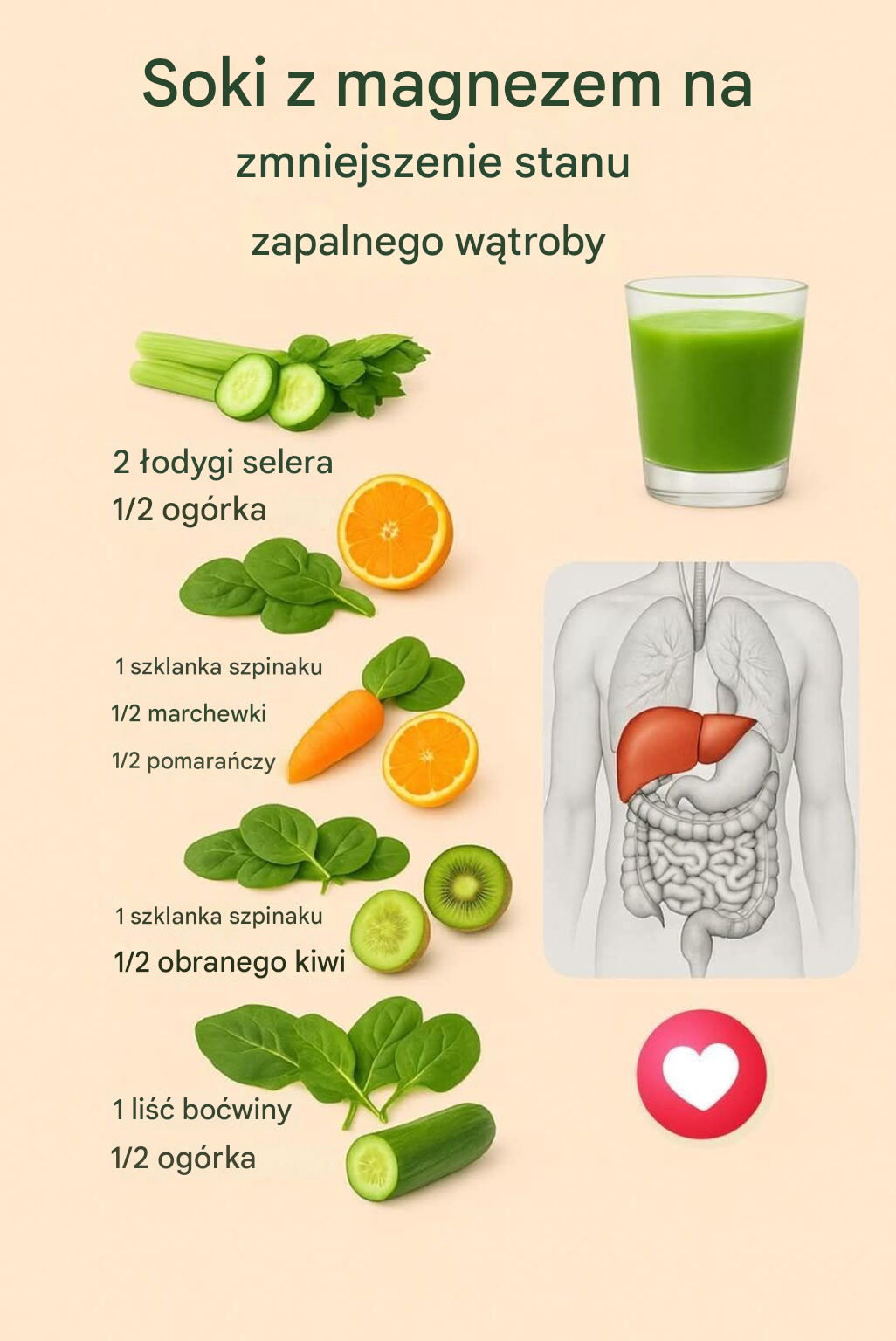 Magnez jest niezbędnym minerałem, który odgrywa rolę w ponad 300 reakcjach enzymatycznych w organizmie, w tym tych, które wspomagają pracę wątroby i pomagają zmniejszyć stan zapalny. W połączeniu z innymi składnikami wspomagającymi wątrobę, te przepisy na soki zapewniają pyszny sposób na zwiększenie spożycia magnezu i potencjalne naturalne wsparcie zdrowia wątroby.