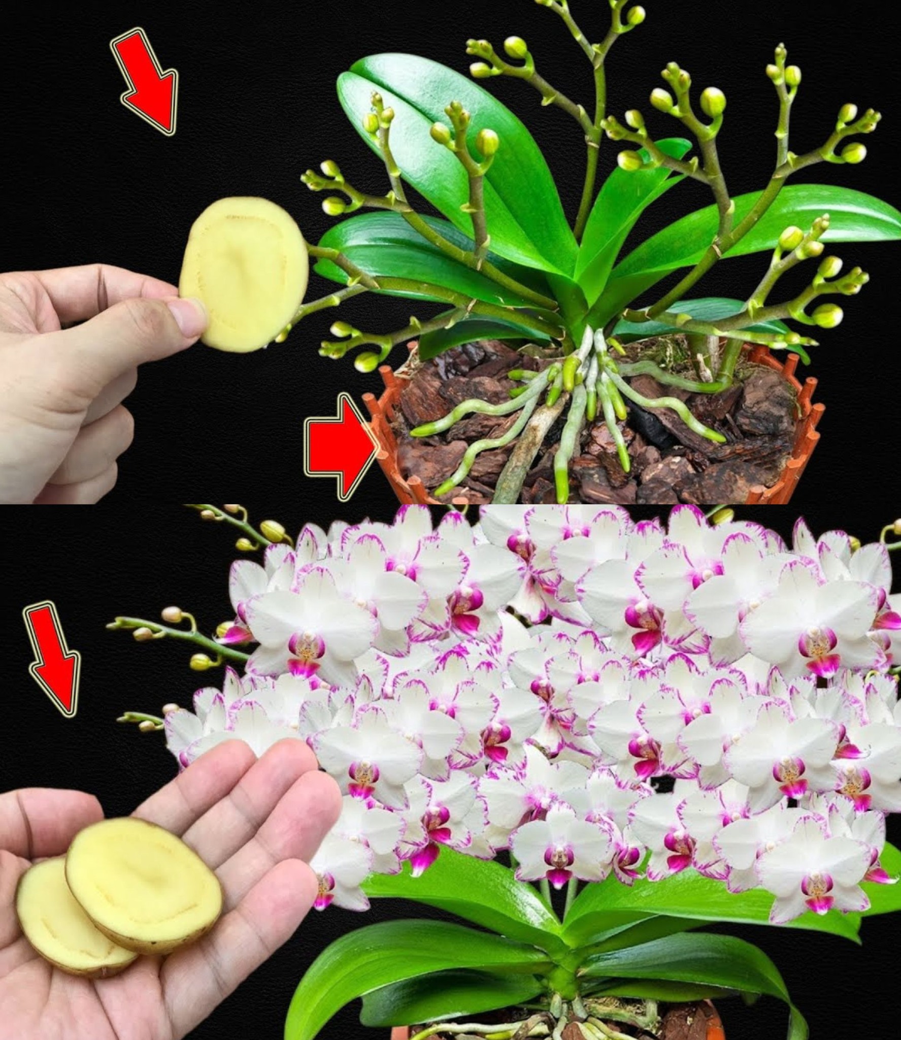 Aby nadać storczykom odpowiedni wigor , wystarczy mały ziemniak (w rzeczywistości potrzeba 20 gramów) i litr wody.