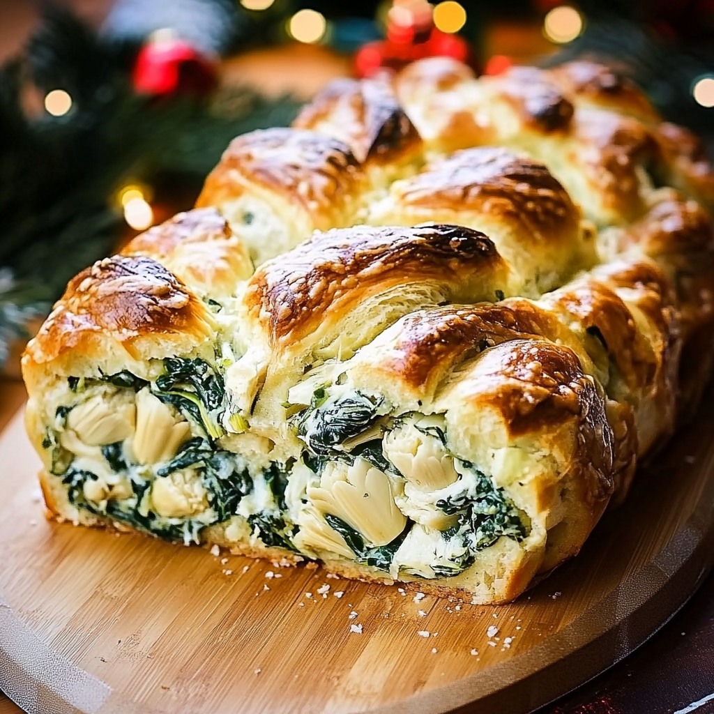 Świąteczny chlebek szpinakowo-karczochowy z dipem 🎄