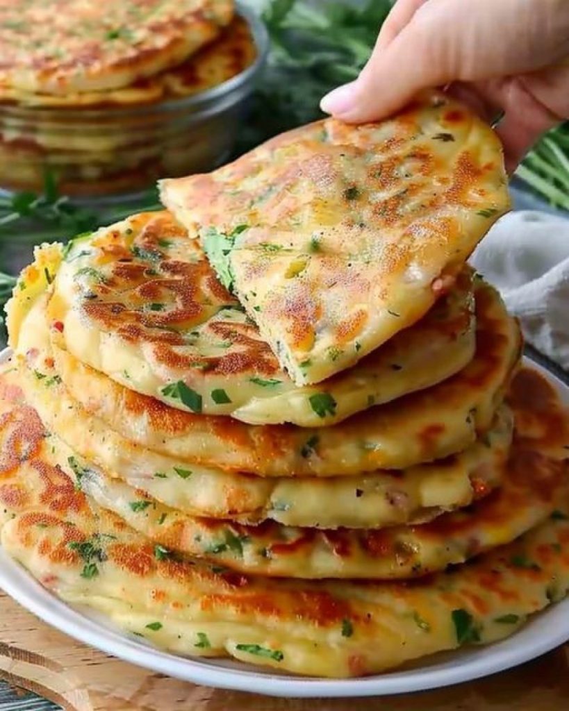Rozgrzej patelnię z odrobiną oleju. Wylej porcję ciasta na patelnię, formując małe naleśniki. Smaż je na średnim ogniu przez kilka minut z każdej strony, aż będą złociste i chrupiące.