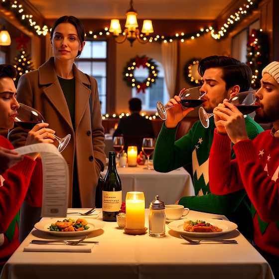 The restaurant hummed with the familiar sounds of clinking glasses, bursts of laughter, and the soft, cheerful tones of a holiday jazz band playing in the background. The music blended seamlessly with the steady hum of conversation from other diners gathered for their Christmas Eve celebrations. The warm golden glow of the chandeliers cast a soft light over the polished tables, where servers in crisp white shirts navigated effortlessly between chairs, balancing trays laden with cocktails, appetizers, and elegant entrées, each plate a miniature masterpiece of culinary indulgence.