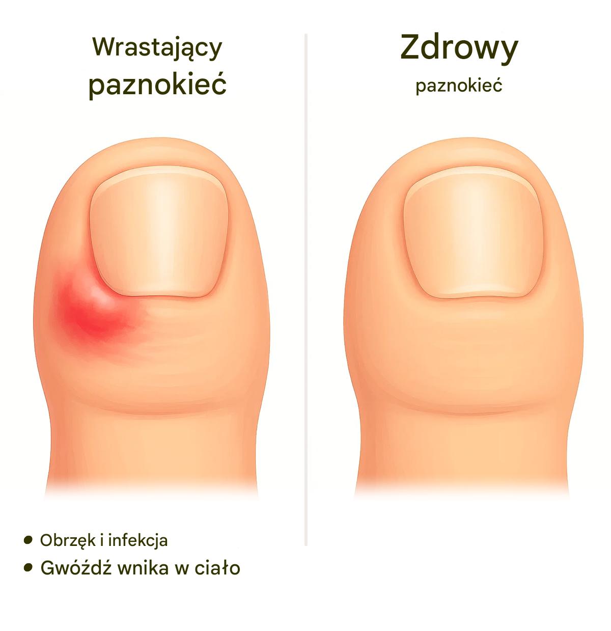 Wrastające paznokcie u stóp mogą być niezwykle bolesne i uciążliwe, uniemożliwiając nawet proste czynności, takie jak chodzenie czy noszenie niektórych rodzajów butów. Nieleczone wrastające paznokcie u stóp mogą ulec dalszemu zakażeniu i powodować ropnie.